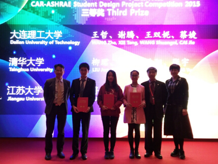 2016年4月8日下午,2015年CAR-ASHRAE学生设计竞赛颁奖礼在北京临空皇冠假日酒店召开。我校建筑环境与能源应用工程专业王哲同学和端木琳老师前往参加。我校代表队在比赛中获得三等奖,端木琳老师获得优秀指导教师。