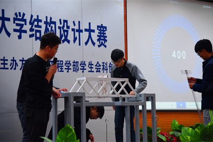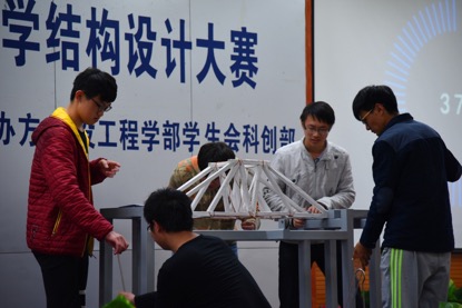 本届大赛的题目是“单跨结构模型设计、制作和加载试验”,参赛的有来自全校大一到大四的51支队伍,每支队伍由三到四名同学组成。