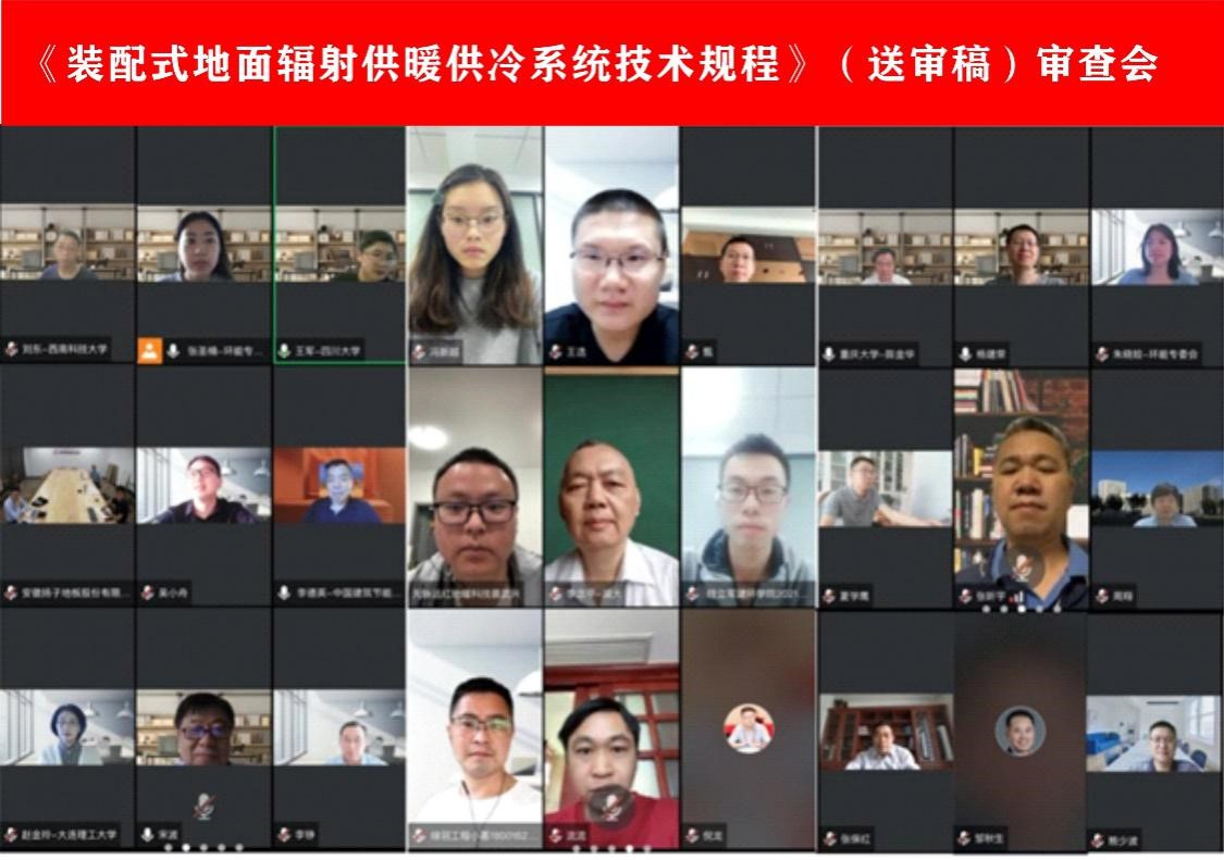 2022年5月25日,由四川大学和大连理工大学主编的中国工程建设标准化协会标准《装配式地面辐射供暖供冷系统技术规程》(以下简称《技术规程》)(送审稿)审查会在线上召开。中国工程建设标准化协会李铮顾问总工程师、建筑环境与节能专业委员会宋波秘书长、朱晓姣副秘书长、张圣楠工程师,标准主编单位四川大学建筑与环境学院王晖副书记、大连理工大学土木工程学院赵金玲副院长出席了会议。由四川大学、大连理工大学、西南科技大学、建科环能科技有限公司、住房和城乡建设部科技与产业化发展中心、曼瑞德集团有限公司、南京天脉远红地暖科技有限公司、成都利亨聚氨酯新材料有限公司、广州孚达保温隔热材料有限公司、成都东天舒适家居有限责任公司、霍弗尔(北京)科技有限公司、四川聚春能源开发有限公司、上海意利法暖通科技有限公司、上海绿羽节能科技有限公司、中创博瑞建设工程有限公司、安徽扬子地板股份有限公司、四川大学工程设计研究院有限公司、四川省健康人居工程技术研究中心、同济大学、南京师范大学等20家编制单位组成的编制组,共40余人参加了会议。其中大连理工大学参编人员有吴小舟副教授和李祥立副教授。