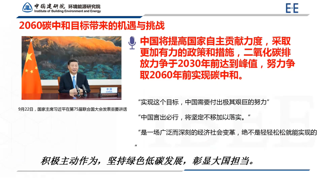 徐伟院长以国家主席习近平在第75届联合国大会发表的“碳达峰、碳中和”讲话为开篇,介绍了中国建筑碳排放的发展现状,并以此为背景展望了建筑行业新机遇和挑战,阐述了建筑领域实现“双碳”目标的措施。