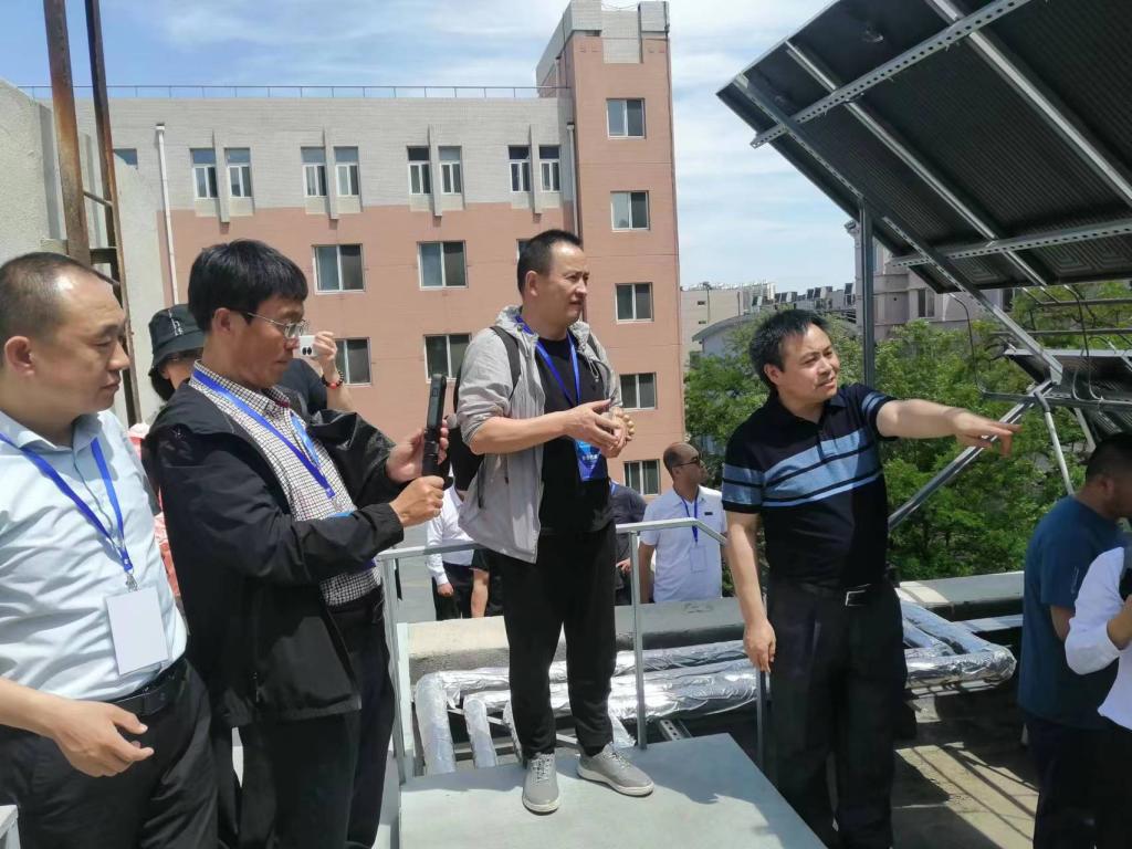 大连理工大学姜镀辉博士详细汇报《巨星俱乐部太阳能PVT热泵土壤跨季节储能热电冷综合能源示范项目》的设计、安装及运行情况,并进行现场讲解交流。